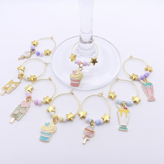 Set 8 Enamel Wine Glass Charms