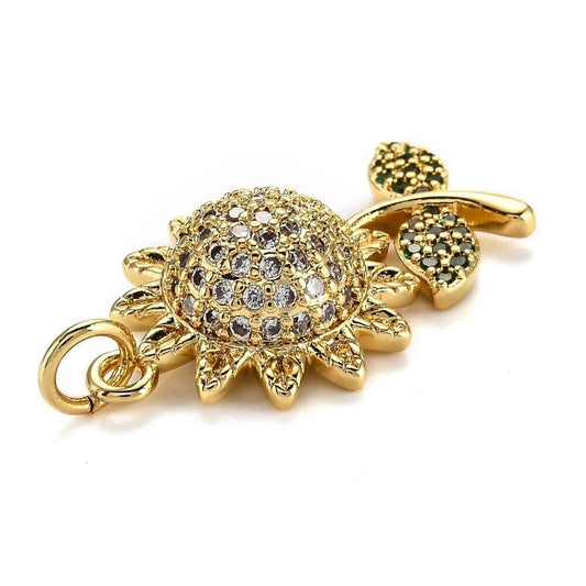 18K Gold Plated Sunflower Cubic Zirconia Pendent / Gold Plated Flower Pendant