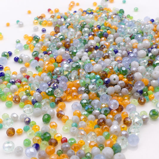1500 Glass Beads Faceted, Mixed Size. Glass Crystal Beads. 50g.