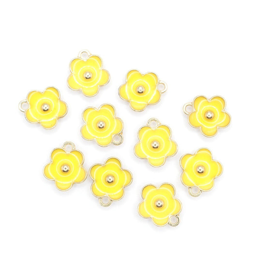 10 Yellow Gold Plated Enamel Daisy Flower Charms