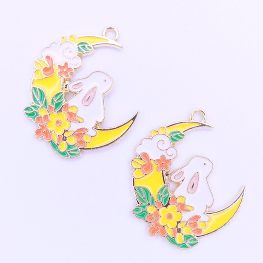 2 Rabbit In The Moon Enamel Charms