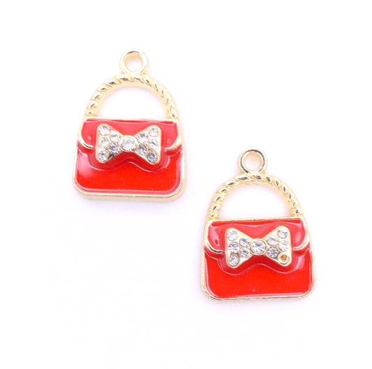 2 Red Enamel Gold Plated And Rhinestone Handbag Purse Charms