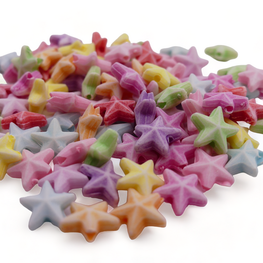 100 Pastel Star Beads - Random Mixed Acrylic Beads - 10mm x 10mm, 2mm Hole