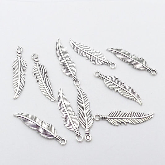 10 Tibetan silver Tone Feather Metal Charms