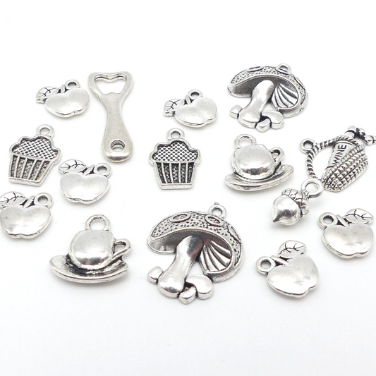 15 Food Picnic Theme Tibetan Silver Metal Charms