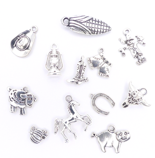 12 Farm Animal Cowboy Tibetan silver Tone Metal charms
