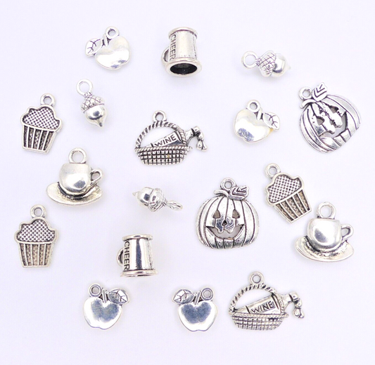 18 Food Picnic Autumn Theme Tibetan Silver Metal Charms