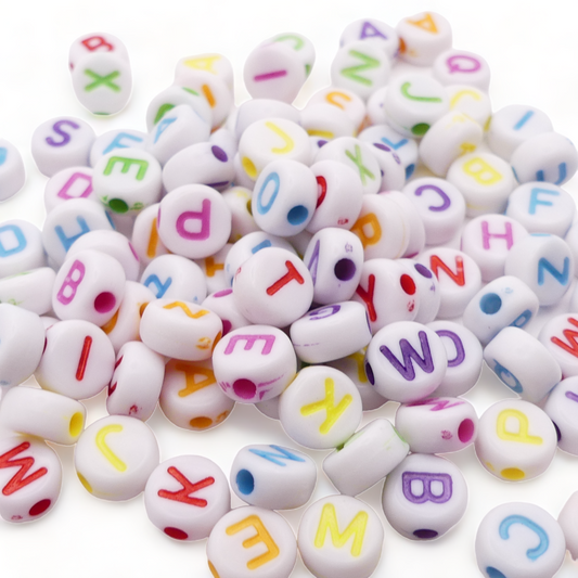100 White Round Mixed Alphabet Letter Beads RAMDOM Mix Of Colours And Letters