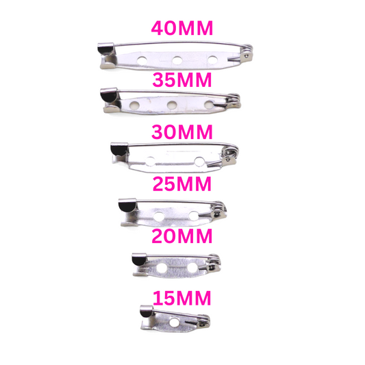 STEEL BROOCH BACK PINS 15mm 20mm 25mm 30mm 35mm 40mm BAR PIN BADGE