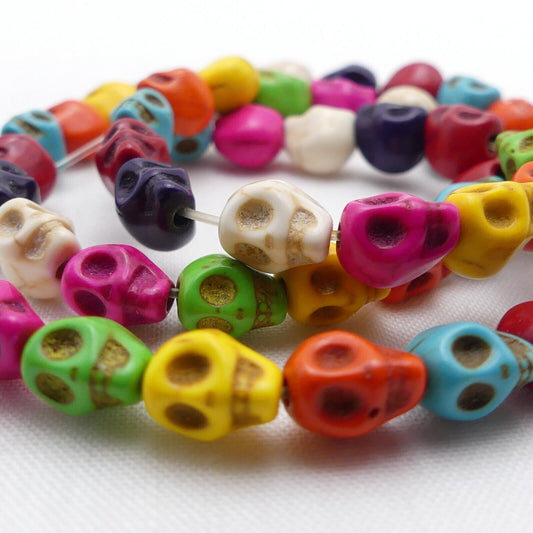 48 Skull Beads Synthetic Turquoise Random Mixed Colours 8mm x 6mm