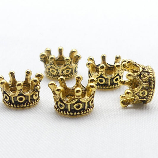 5 Gold Tibetan Crown Bead Charms