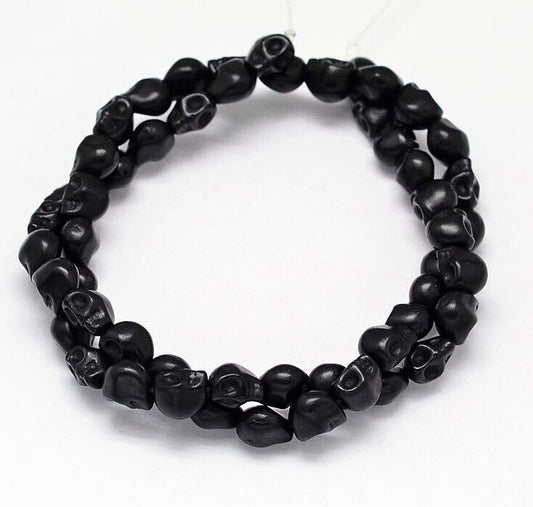 48 Black Skull Beads Synthetic Turquoise 8mm x 6mm Skeleton beads
