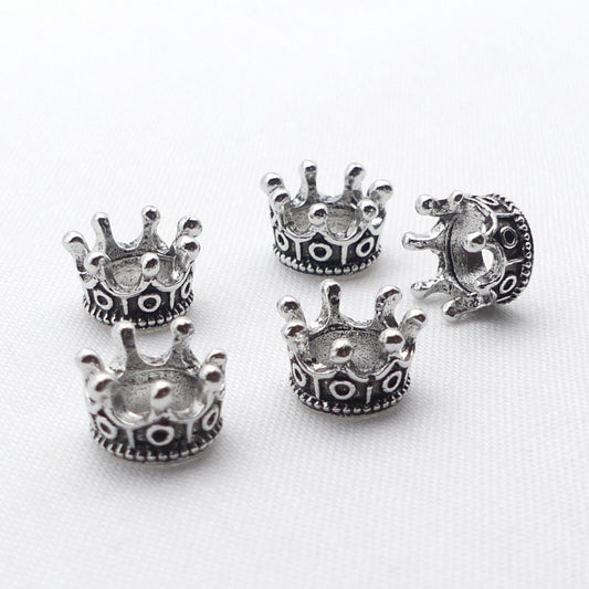 5 Silver Tone Crown Spacer Beads