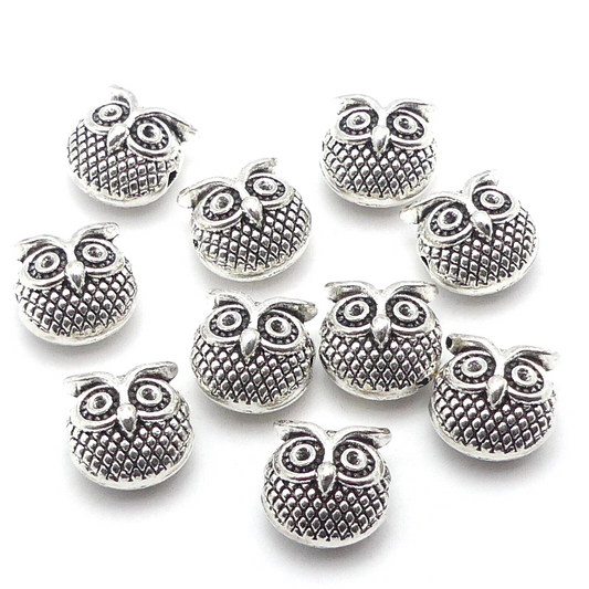 10 Tibetan Metal Silver Tone Owl Spacer Beads