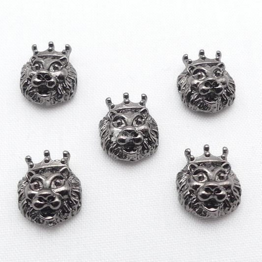 5 Lion In A Crown Gunmetal Spacer Beads Charm Jewellery Making